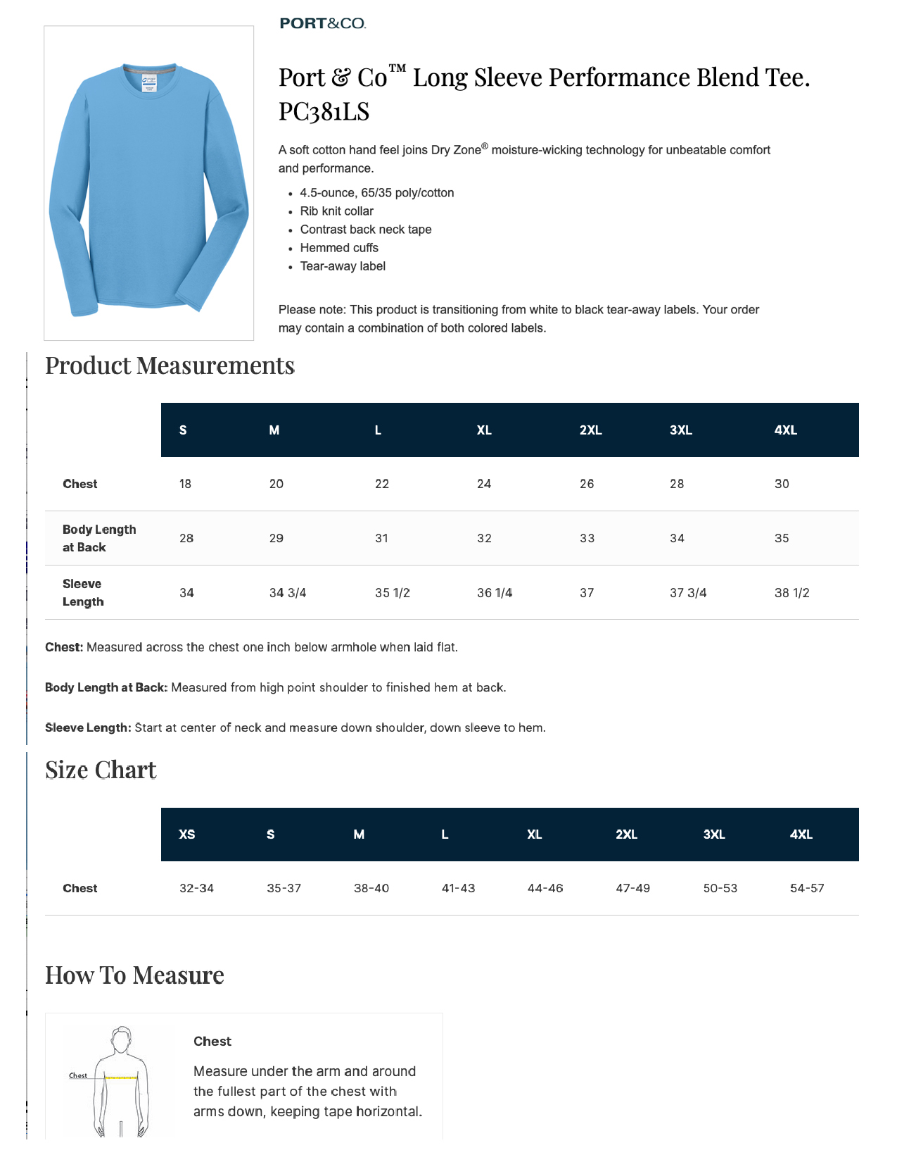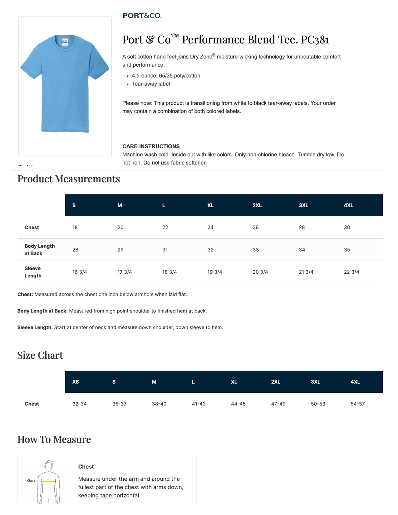 Port & Co. Performance Blend Tee4.5 oz., 65% polyester, 35% cotton.